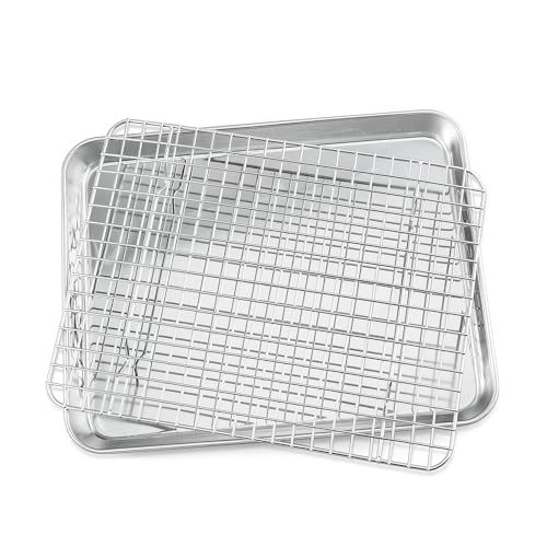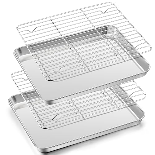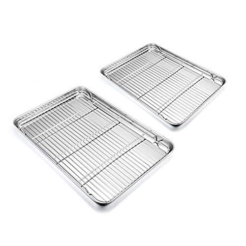 JMIATRY 2 stycken bakplåtar med kylgaller, 26,5 x 20,5 x 2,5 cm rostfritt stål kakplåt och kakgaller, rektangulär ugnsstekning för bakning, stekning, kylning, diskmaskinssäker