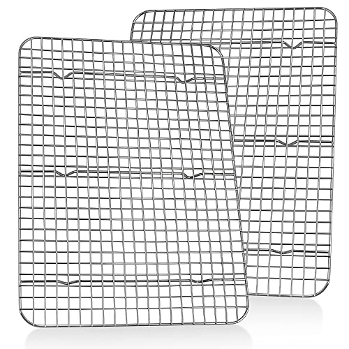 TEAMFAR Kylgaller set om 2, kylgaller i rostfritt stål för stekning, grillning, kylning, 24,5 x 19 x 1,5 cm, hälsosam och hållbar, rostfri och diskmaskinssäker