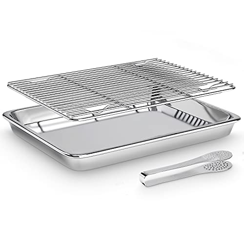 TEAMFAR Bakplåt med kylgaller, bakform i rostfritt stål, kakplåt och kylgaller för bakning, kylning, servering, hälsosam och giftfri, lätt att rengöra och diskmaskinssäker (1 bricka + 1 grillrost)