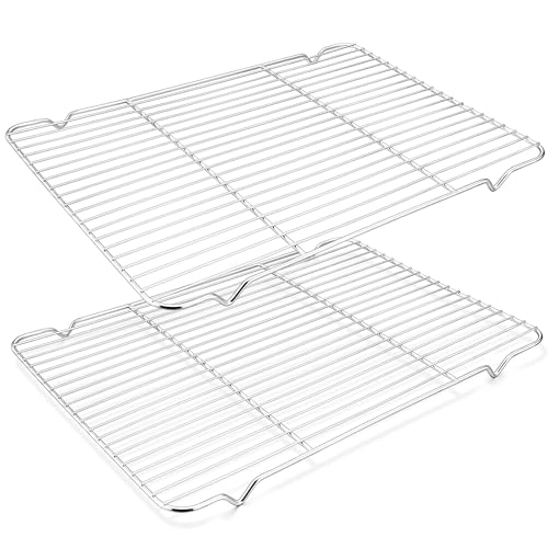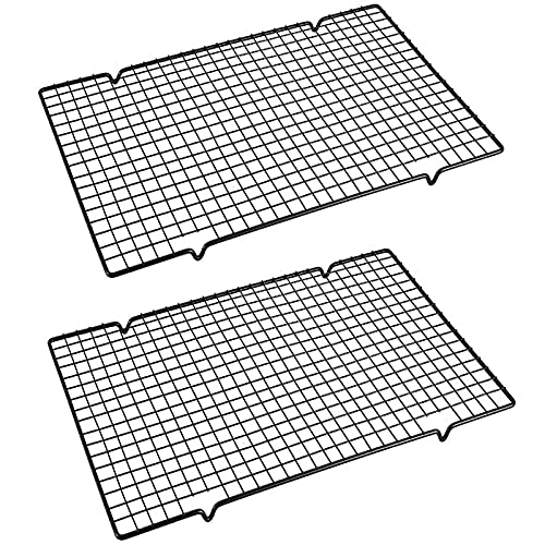 TEAMFAR Kylgaller, rektangulärt köksgaller i rostfritt stål, kylgaller, 2 stycken återanvändbara bakgaller för bakning grillning, 38,9 cm x 28,5 cm x 2 cm, hälsosam och hållbar, diskmaskinssäker