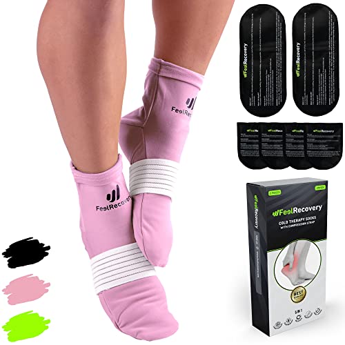 Strumpor för Kallterapi för Fotvård - Återanvändbar Kylpåse Gel för Fot & Fotled - Kyl- och Värmedyna för Polyneuropati, Plantar Fasciit & Ont i Fot - Ice Pack Socks (L/XL, Rosa)