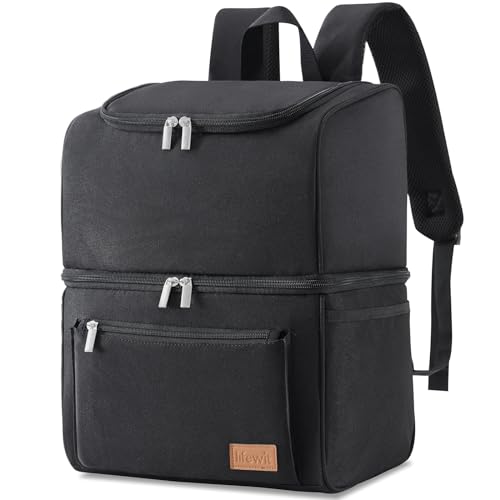 Lifewit 21L 30-Can Isolerad kylryggsäck Termisk lunchväska, Mjuk picknickryggsäck Läckagesäker dubbla lager matkylväska för män kvinnor mamma för lunch/picknick/shopping/resa, Svart