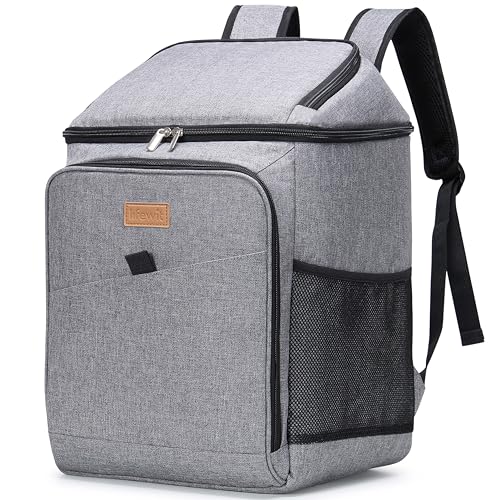 Lifewit 26L 34-Can isolerad kylryggsäck kylväska, stor picknickväska läckagesäker bärbar kylförvaring mjuk matlåda för män kvinnor för utomhus/picknick/strand/grill/camping/resor/familj, Grå