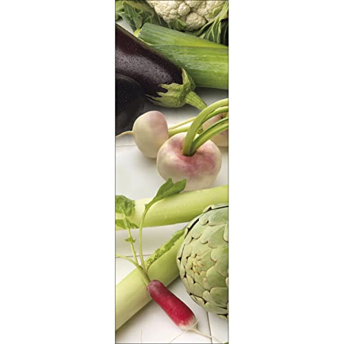 PLAGE KITCHEN Klistermärke för kök och kylskåp trädgårdsgrönsaker – 180 x 59,5 cm, vinyl, färgglad, 180 x 0,1 x 59,5 cm