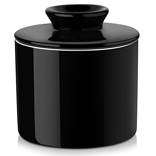 LOVECASA , Smör med kylning, 180 ml, ostklockor, porslinssmörburk, konserverad ost utan kylskåp (svart)
