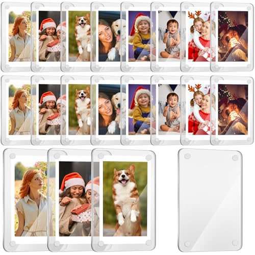 24 delar kylskåpsmagnet bildram dubbelsidig akryl kylskåp magnetisk ram mini klar magnetiska fotoramar ramlös bildram för filmfoton kort stämpel, 6,36 x 9,54 cm