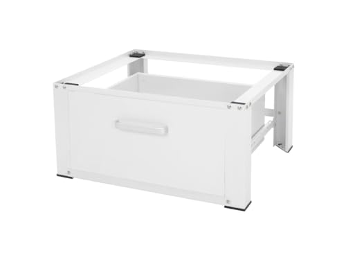 ML-Design Robust Tvättmaskinsbasram med Utdragbar Låda 63x54 cm i Vit Stål Max Belastning 150 kg Stabil Tvättmaskinsunderrede Piedestal 31,5 cm Förhöjning Underkonstruktion för Torktumlare Kylskåp