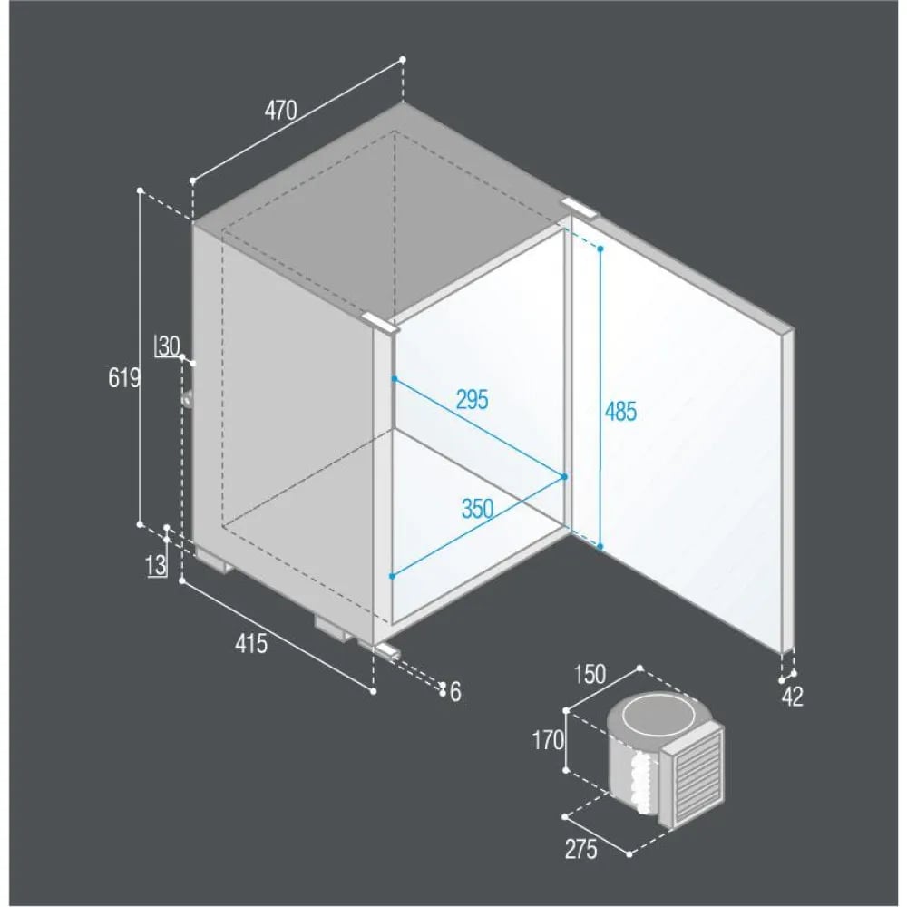 Kylskåp med kompressor Dometic NRX 60C, 12V / 24V, dörr, 55 liter (varav 6.6 liter frysfack), frontpanel mörksilver (rostfritt stål)