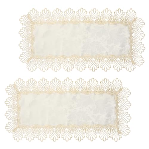 URROMA Spets bordsduk, 2 st vit bakgrund guldkant rektangulär tygskydd handduk tvättmaskin kylskåp dammskydd, 40 x 85 cm