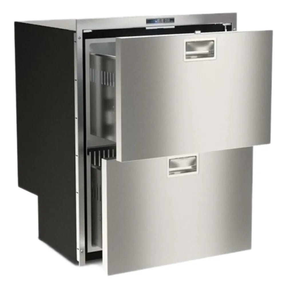 Kylskåp med kompressor Isotherm Cruise DR85 Inox Clean Touch, 12V / 24V, utdragbar låda, 70 liter (varav 15 liter frysfack), mörksilver frontpanel + monteringsram