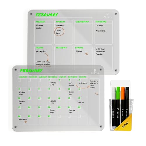 PREVIS 2 x akryl veckoplanerare månadsplanerare avtorkningsbar för kylskåp A3 (40 x 30) med 4 brädmarkörer – 2 x akryl magnetiska transparenta kalendars för kylskåp – familjeplanerare kan torkas av