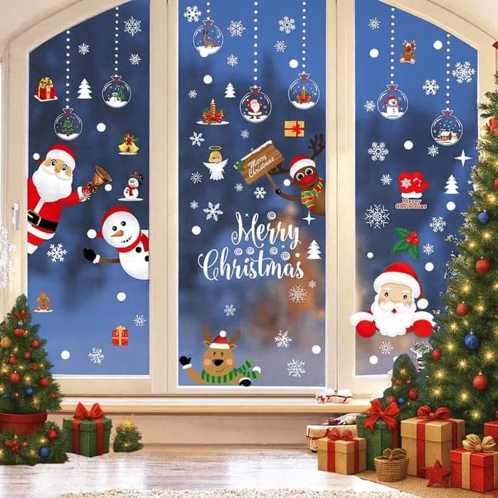 Klistretikett Jul - 9 dekorskivor för fönster, glas, spegel, kylskåp, elektrostatisk, återanvändbar Phonillico®
