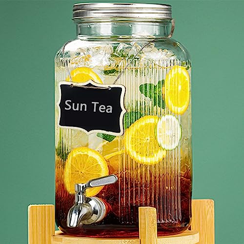 Lomejii 5,5 L glas dryckesdispenser med tapfor kylskåp, rostfritt stål tapp och lock, brygga kombucha Mason burk för vattenjuice mjölk is kaffe sol te, stor kall dryck, klar