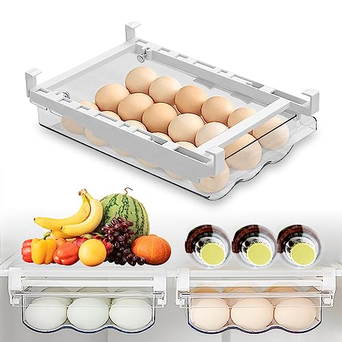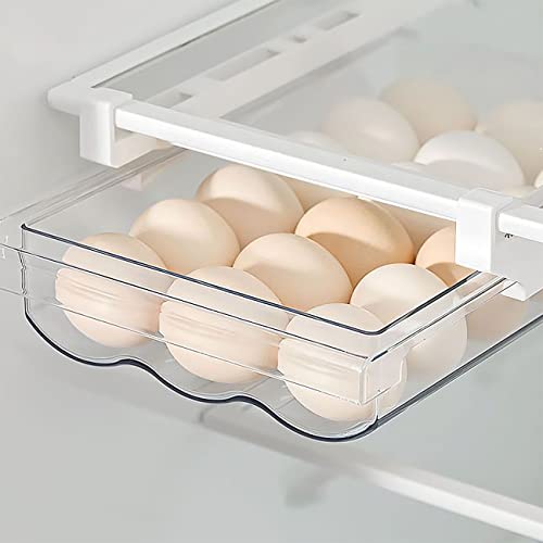 Lådor ägghållare, utdragbart kylskåp, äggförvaring, utdragbara äggförvaringslådor med glidskena och handtag, kylskåp, förvaringslåda för kylskåp, frys, kök