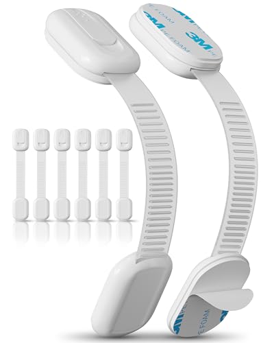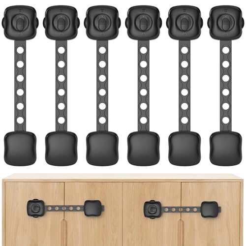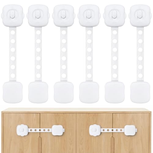 Barnsäkerhet skåp lås remmar baby lås, 6-pack justerbara barnsäkerhetsbandlås för köksskåp, dörrar, kylskåp, skåp, lådor, ugnar, toalett, enkel installation, stark och hållbar