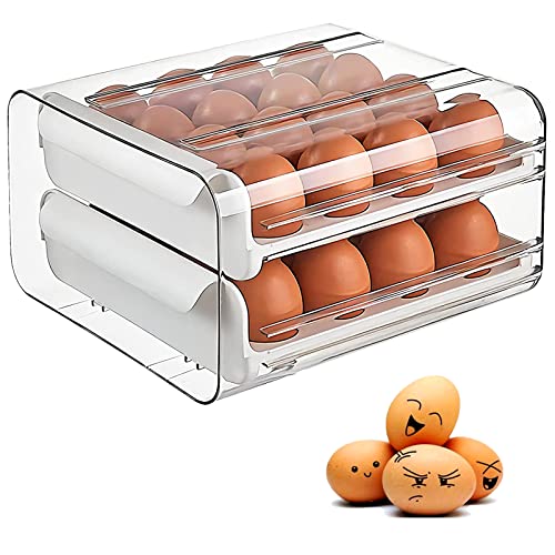 SALWINGS Ägghållare för kylskåp, dubbla lådor, äggförvaringslåda, behållarhylla, stapelbar, hushållsägare, organisatör, platsbesparande för kök, kylskåp, bänkskiva, rymmer 32 ägg, vit