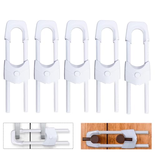Vastsea 5 stycken U-formade dörrsäkring, barnsäkerhet för skåp, skåpsäkring för baby, utan borrning och skruvar, för skåp, dörr, lådor, kylskåp, knapp, handtag