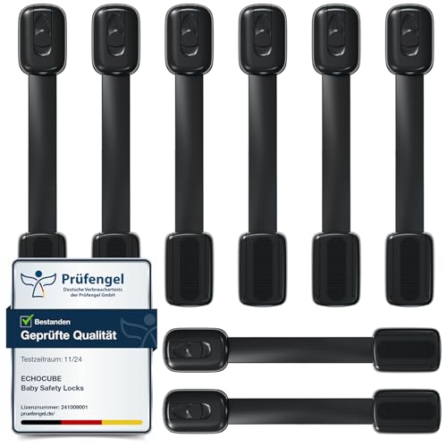 ECHOCUBE Säkerhetsskåp för barn, 6 st uppgraderade dubbla lås, babysäkra skåplås, justerbara babysäkerhetslås för skåp, lådor, kylskåp, toalett (svart)