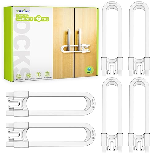 6-pack barnlås återanvändbara, U-formade lås för skåp, barnlås för dörrar, barnsäkring för skåp, dörrar, lådor, kylskåp, knappar, handtag, lätt att använda