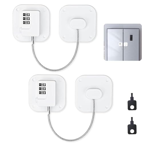2 x kylskåpslås med nyckel, barnsäkring skåplås med digitalt lösenord, utan borrning, barnsäkring skjutdörr för lådor, kylskåp, fönster