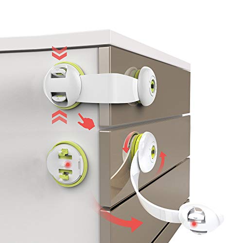 Barnsäkerhetslås, Flow.month 10-pack barnsäkerhetsskåp lås, inga verktyg eller borrning behövs, babyskåp lås för köksskåp, lådor, apparater, garderob, kök, kylskåp och ugn, skräp