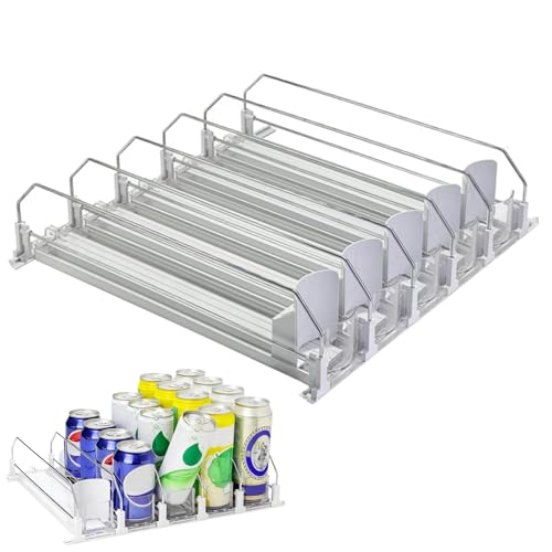 Zjyufy Kylskåpsarrangör för burkar, automatisk burkdispenser för kylskåp rymmer 25 burkar, burkhållare kan organisera för kylskåp, kök, stormarknader, skåp