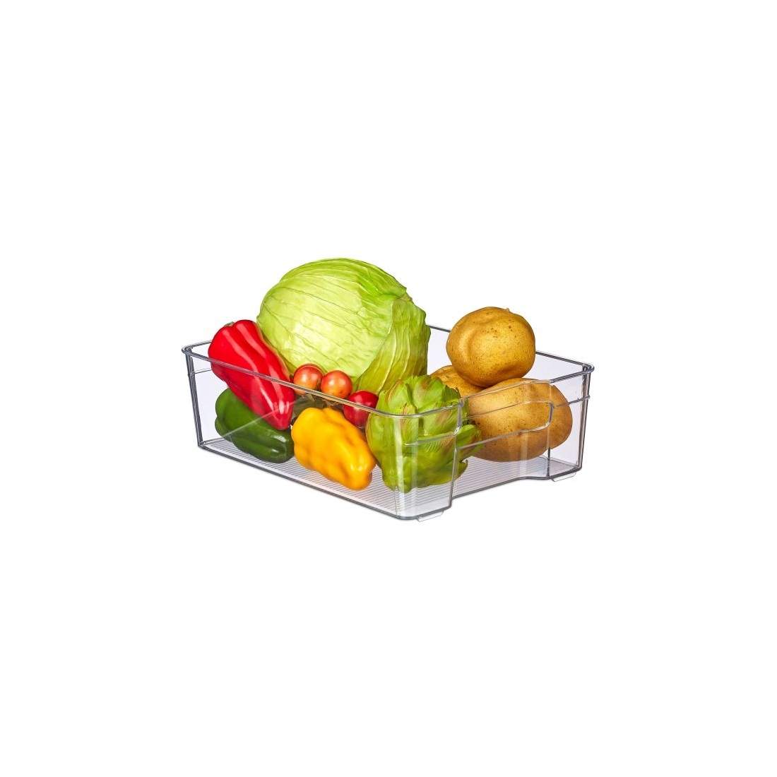 Relaxdays Kylskåpsförvaring, livsmedelsförvaring, HBT: 10 x 38 x 21 cm, kylskåpslåda med handtag, transparent
