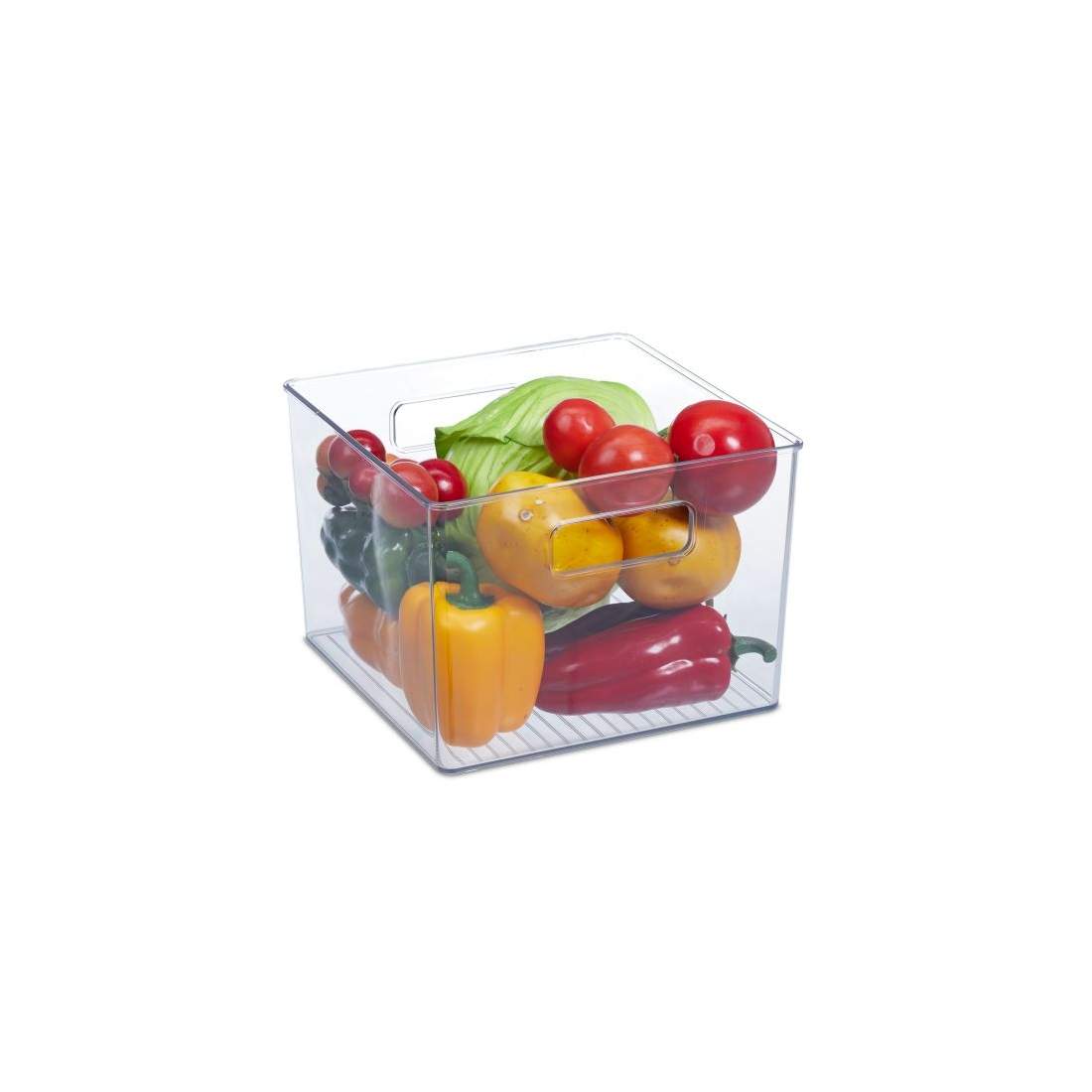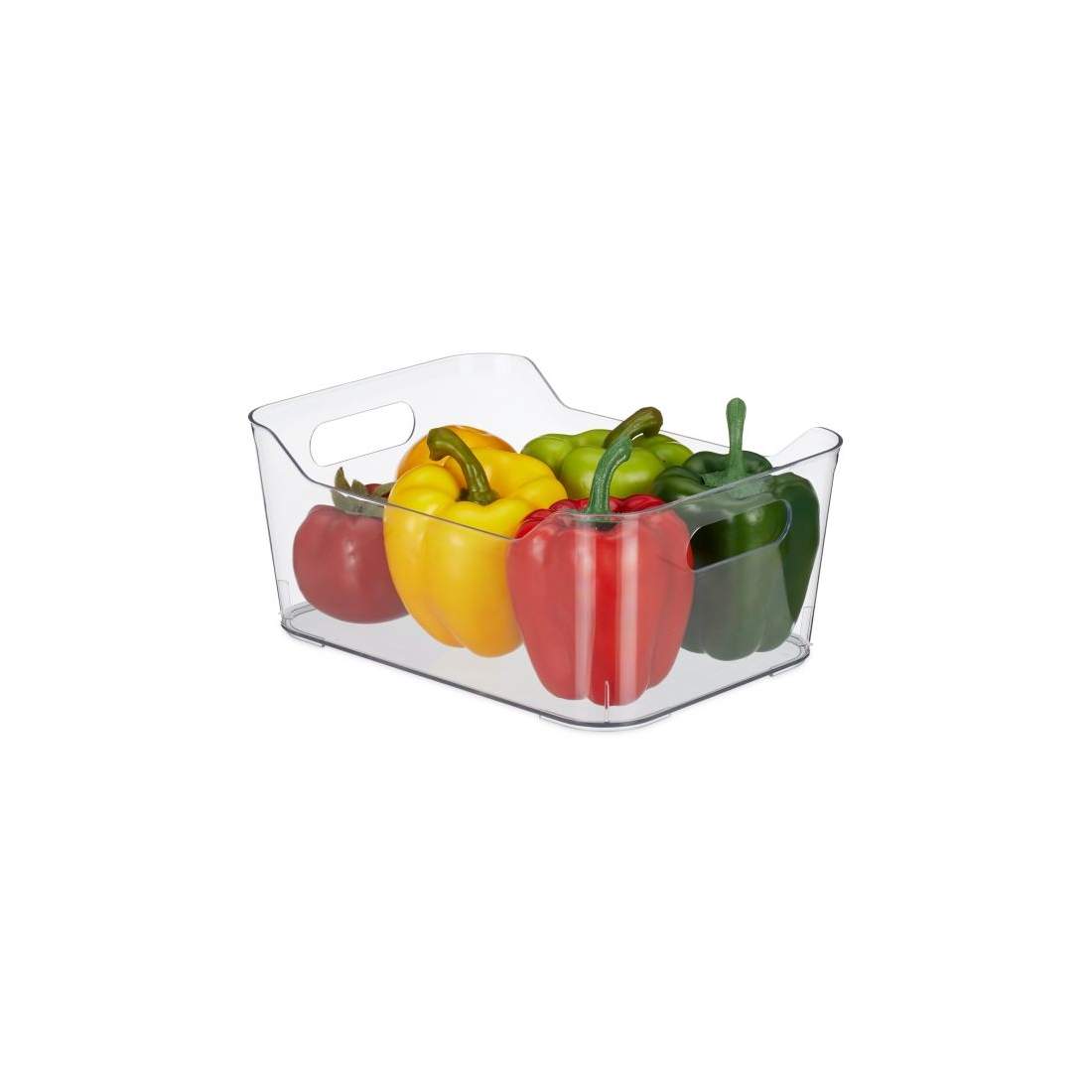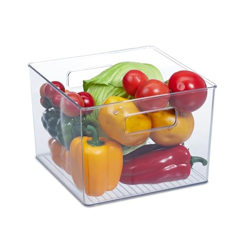 Relaxdays Kylskåpsförvaring, livsmedelsförvaring, HBT: 15,5 x 21 x 21 cm, kökslåda med handtag, transparent