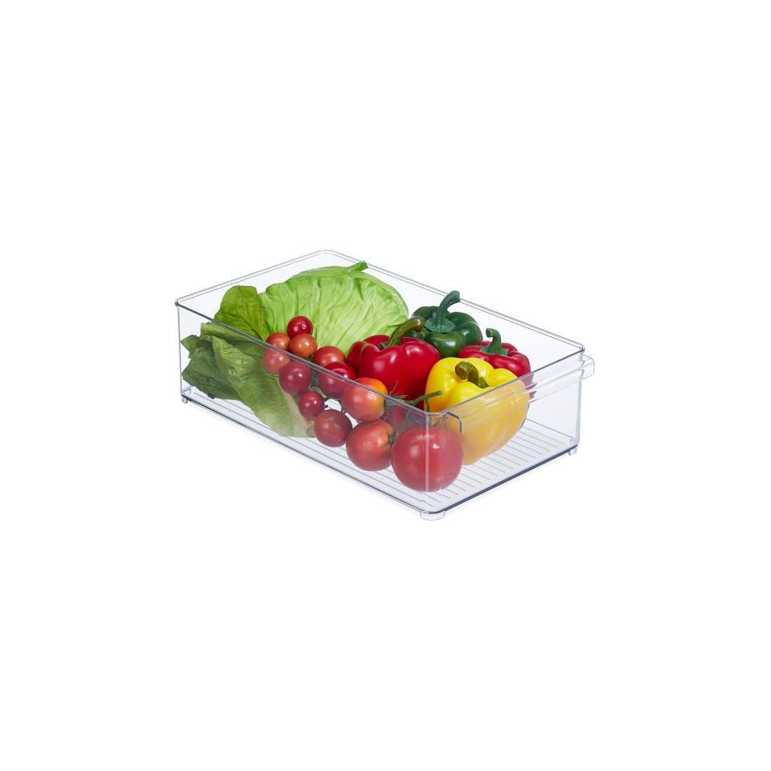 Relaxdays Kylskåpsförvaring, livsmedelsförvaring, HBT 10,5 x 25 x 18 cm, kylskåpslåda med handtag, transparent