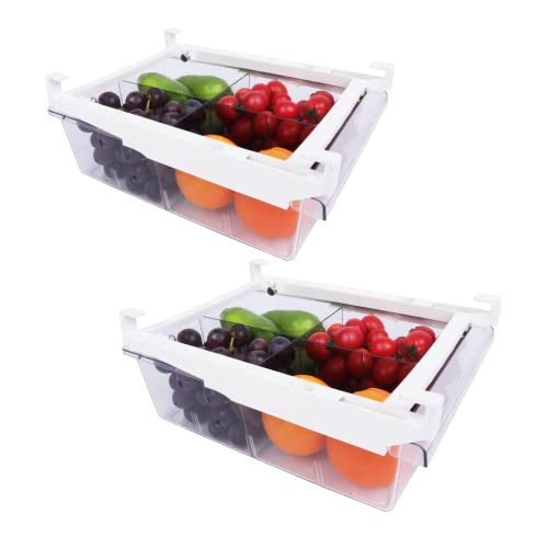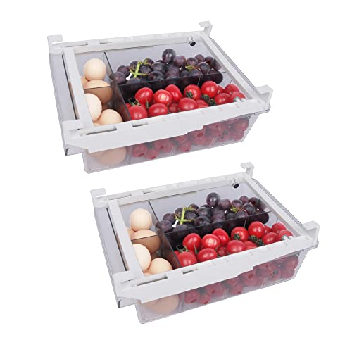 YekouMax Adjustable Kylskåpsförvaring av Högkvalitativt Kvalitet Med Handtag,Återanvändbar Köksförvarings-&Organisationsset,Används för att Förvara Frukt,Grönsaker,ägg i Köket-BPA-fri (2 Lådor, Stora)