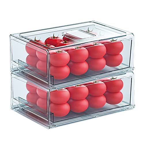 YekouMax Kylskåpsförvaring Förvaringsbehållare, Stapelbara Förvaringskuber i Plast Med Lådor, Mycket Lämplig för Användning i kök, förråd, Hyllor - BPA-fri (Transparent)(2 st, 30x20,6x11,5 cm)