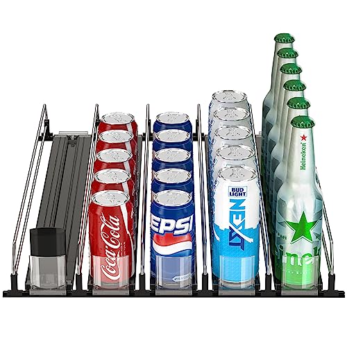 Bomclap Kylskåpsförvaring, organisatör, automatisk, burkhylla för drycker, öl och läsk, burkdispenser för kylskåp i 5 rader för 25 dryckesburkar i standardstorlek, svart