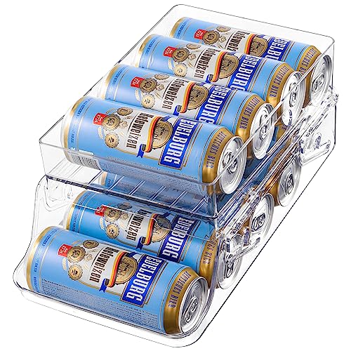Lighterday rullande kylskåpsdispenser automatisk burhållare klar kylskåpsförvaring organisatörer, drycker öl läsk popburkar förvaring, för kylskåp kök skåp bänkskiva (2)