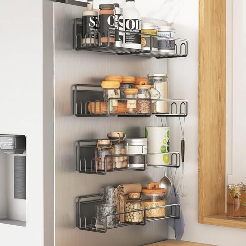 COVAODQ Kryddhylla i metall, 4-pack kylskåpsmagnet, kryddhylla, kylskåpsförvaring, magnetisk, platsbesparande lösning för kök, svart