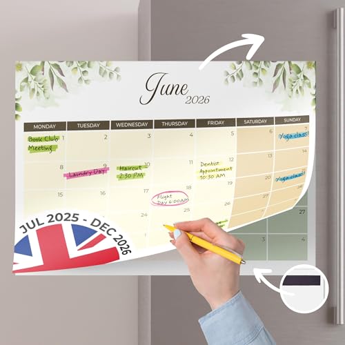 Finoly Magnetisk Kylskåpskalender på Engelska Juli 25 December 26 (18 Månader) | 2025 Kylskåpskalender | Månadskalender | Magnetkalender Kylskåp 2025 | Magnetisk Kalender med Fäste
