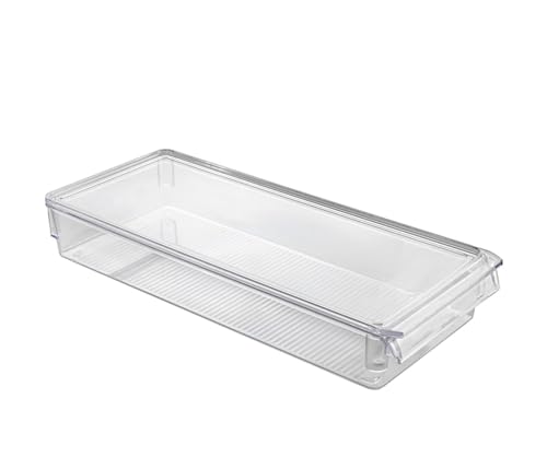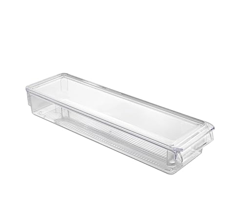 Relaxdays Kylskåpsförvaring, livsmedelsförvaring, HBT: 10 x 38 x 21 cm, kylskåpslåda med handtag, transparent