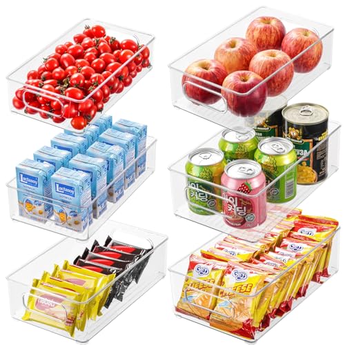 WHOISMIP 6-pack kylskåp organisatör förvaringslåda set, kylskåp organiserare låda organisationssystem stapelbar, kylskåpsarrangör kylskåpslåda, kök, pantry snacks förvaringsbehållare (3 storlekar)
