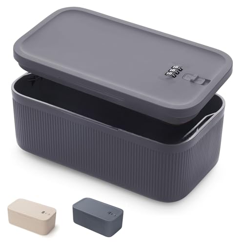 Sightday låsbar förvaringsbox, medicinförvaringsbox, mobiltelefonlåslåda, kylskåpslåda, kombinationslås box för kök/hem/skola/kyl/kontor/personlig/resor (grå/23,9 x 13,1 x 9,6 cm)