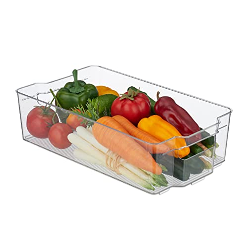 Relaxdays Kylskåpsförvaring, livsmedelsförvaring, HBT: 10 x 16 x 35 cm, kylskåpslåda med handtag, transparent, 10028687