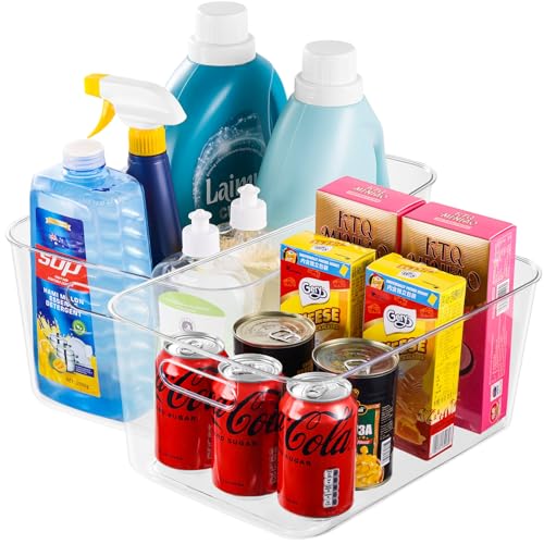 CHUEN Kylskåpsförvaring, stapelbar, set om 3, kylskåpslåda med handtag, skafferi, förvaringsbehållare för kök, köksskåp, skåp, skrivbord, medium, 25,5 x 15,1 x 7,6 cm, klar