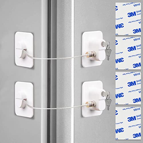 2 x kylskåpslås utan borrning med nyckel för barn och husdjur, kylskåp, barnsäkerhet för tvättmaskin, skåp, garderober, toaletter, vinkylare, fönster (2 st vit med nyckel)