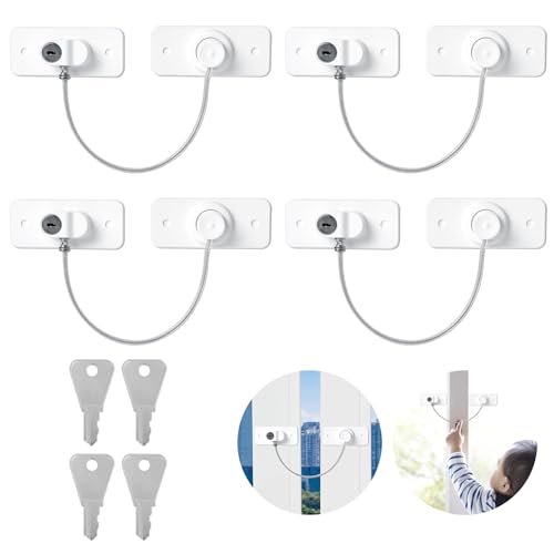 AiQInu 4 st kylskåpslås med nycklar, barnfönsterlås med klistermärke eller skruv, barnskåp hänglås för kylskåp, tvättmaskin, möbler, fönster