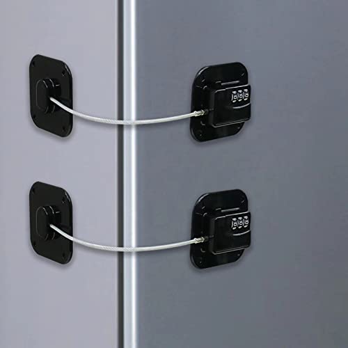 2 x kylskåpslås med kod utan borrning för barn under 5 år, lämplig för kylskåp, tvättmaskiner, skåp, garderober, toaletter, vinkylare, fönster (svart)
