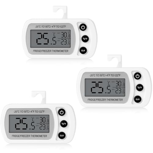 Cozary 3 delar digital kylskåpstermometer kök, magnetisk kylskåpstermometer med krok, ℃ /℉, LCD-display, för hem, restauranger