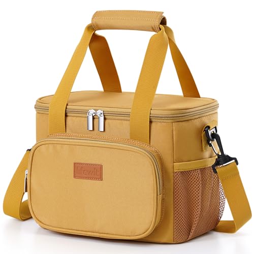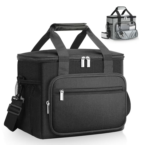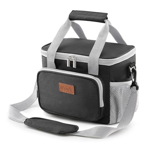 Lifewit Isolerad lunchväska för män, återanvändbar lunchbag för kvinnor, bärbar kylväska frys mjuk väska läckagesäker med justerbar axelrem för vuxna för arbete/picknick, Svart 15 liter