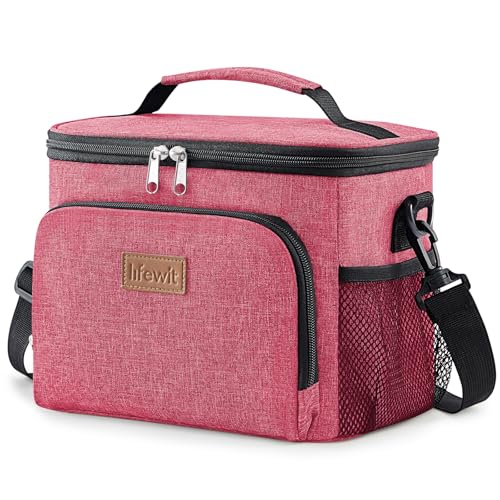 Lifewit Isolerad lunchväska för män, återanvändbar lunchbag för kvinnor, bärbar kylväska frys mjuk väska läckagesäker med justerbar axelrem för vuxna för arbete/picknick, Rosa 9 liter