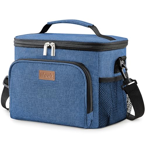 Lifewit Isolerad lunchväska för män, återanvändbar lunchbag för kvinnor, bärbar kylväska frys mjuk väska läckagesäker med justerbar axelrem för vuxna för arbete/picknick, Mörkblå 15 liter