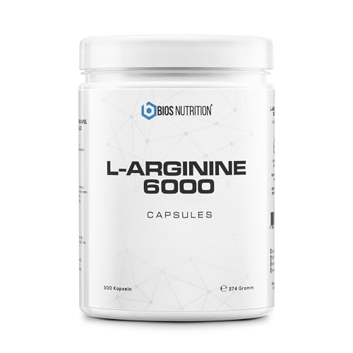 L-Arginine 300 kapslar vegan - 6000 mg rent L-Arginine per daglig dos - Utan tillsatser - BIOS Nutrition (Tillverkad i Tyskland)