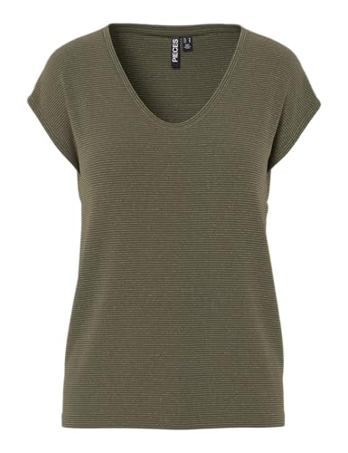 PIECES Dam Pcbillo Te_Lurex ränder T-shirt, Druva blad, L
