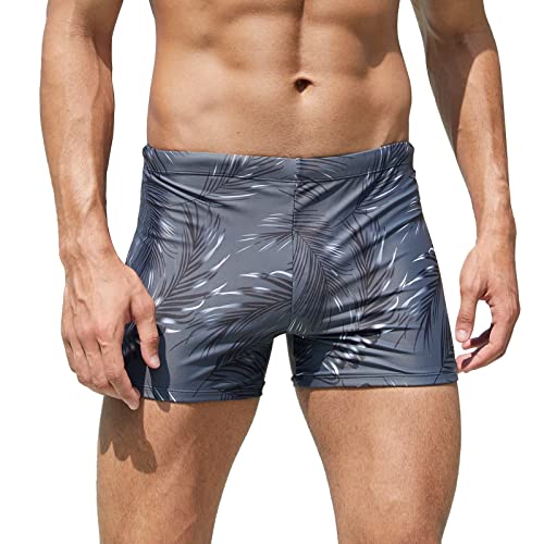 Arcweg badbyxor herr tajta korta badshorts med dragsko simbyxor förlägenhet undvikande dyna vattensport korta byxor UV-skydd pojkar simkläder, Gråa blad, L